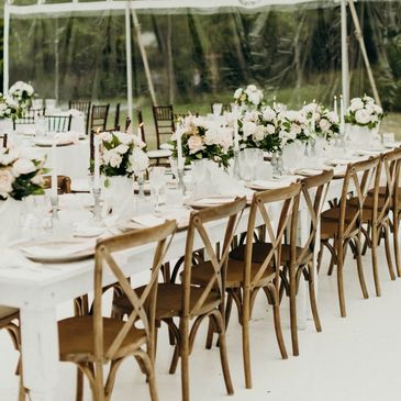 Offering a diverse range of high-quality chairs to suit every type of event, ensuring both comfort and style for your guests. Whether you're planning a formal wedding, a casual outdoor gathering, or a corporate event, our extensive chair selection includes everything from elegant rustic cross-back chairs to versatile folding chairs and bistro seating. Whatever your theme, we have the perfect seating solutions to complement your event.